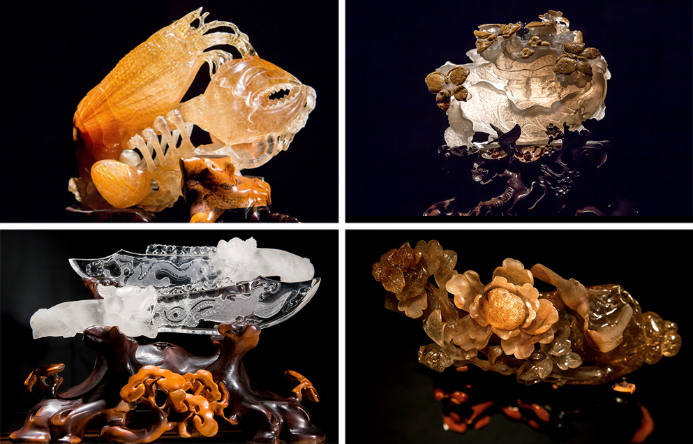 大量使用挖、凿、镂空、磨砂等工艺。 水晶观音